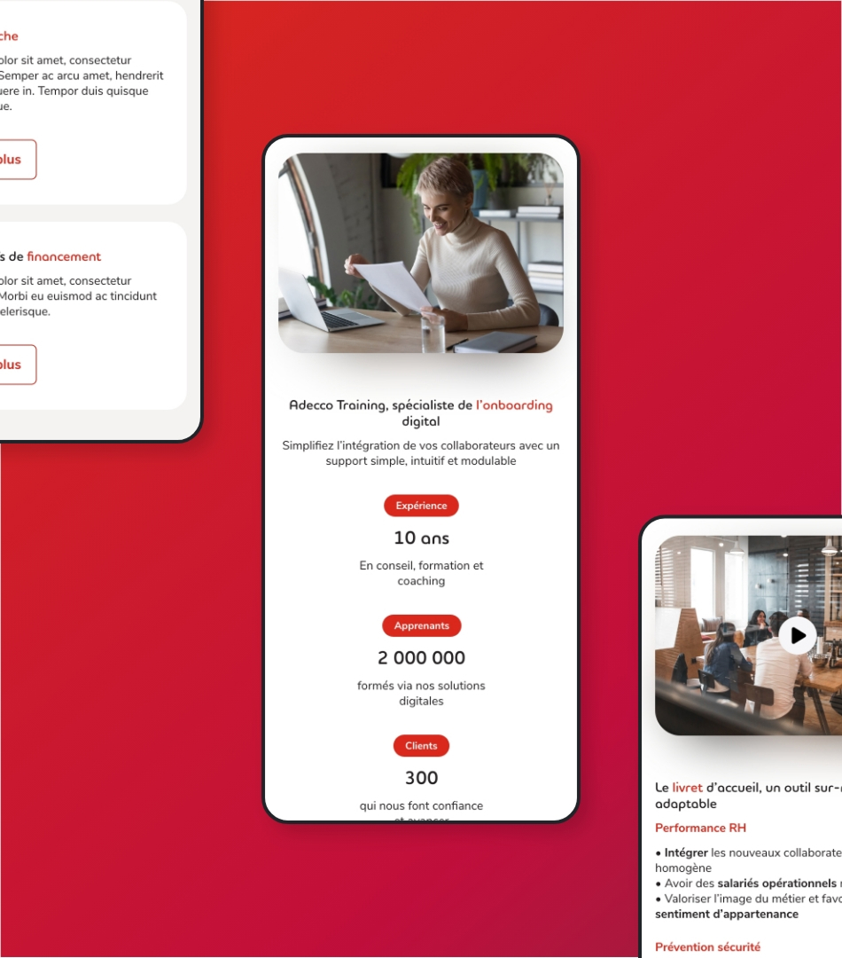 L’objectif principal était de permettre à Adecco Training de gagner en autonomie dans la gestion quotidienne du site. L’architecture a donc été pensée autour de blocs modulaires et indépendants, offrant une grande liberté dans la création et l’évolution des contenus.