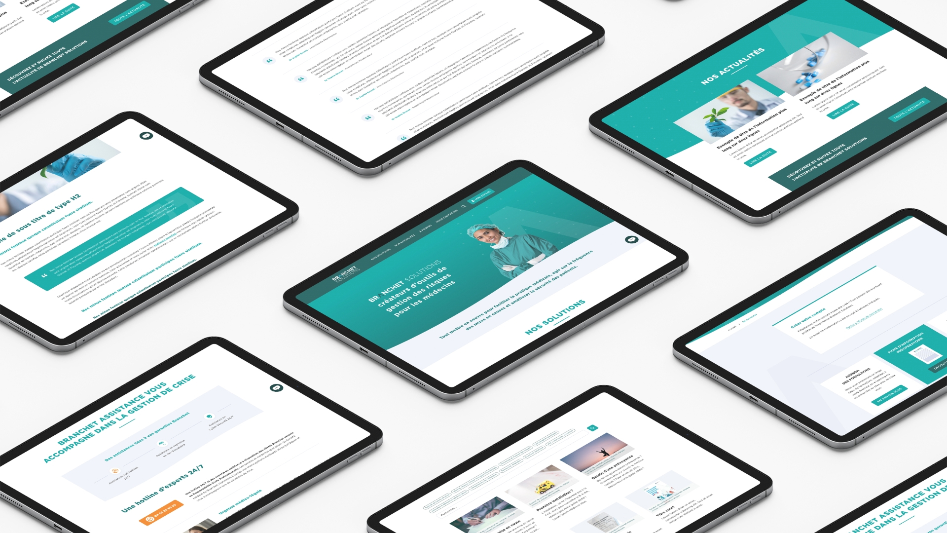 La refonte UI & UX a été menée pour améliorer la lisibilité des informations, en particulier sur mobile et tablette, tout en valorisant les services proposés à destination des médecins. Le site Branchet Solutions a été enrichi d’un espace sécurisé permettant aux praticiens d’accéder à leur documentation professionnelle et à des ressources dédiées, avec des intégrations techniques avancées (API, SSO, consentement patients) pour une expérience cohérente et sécurisée.