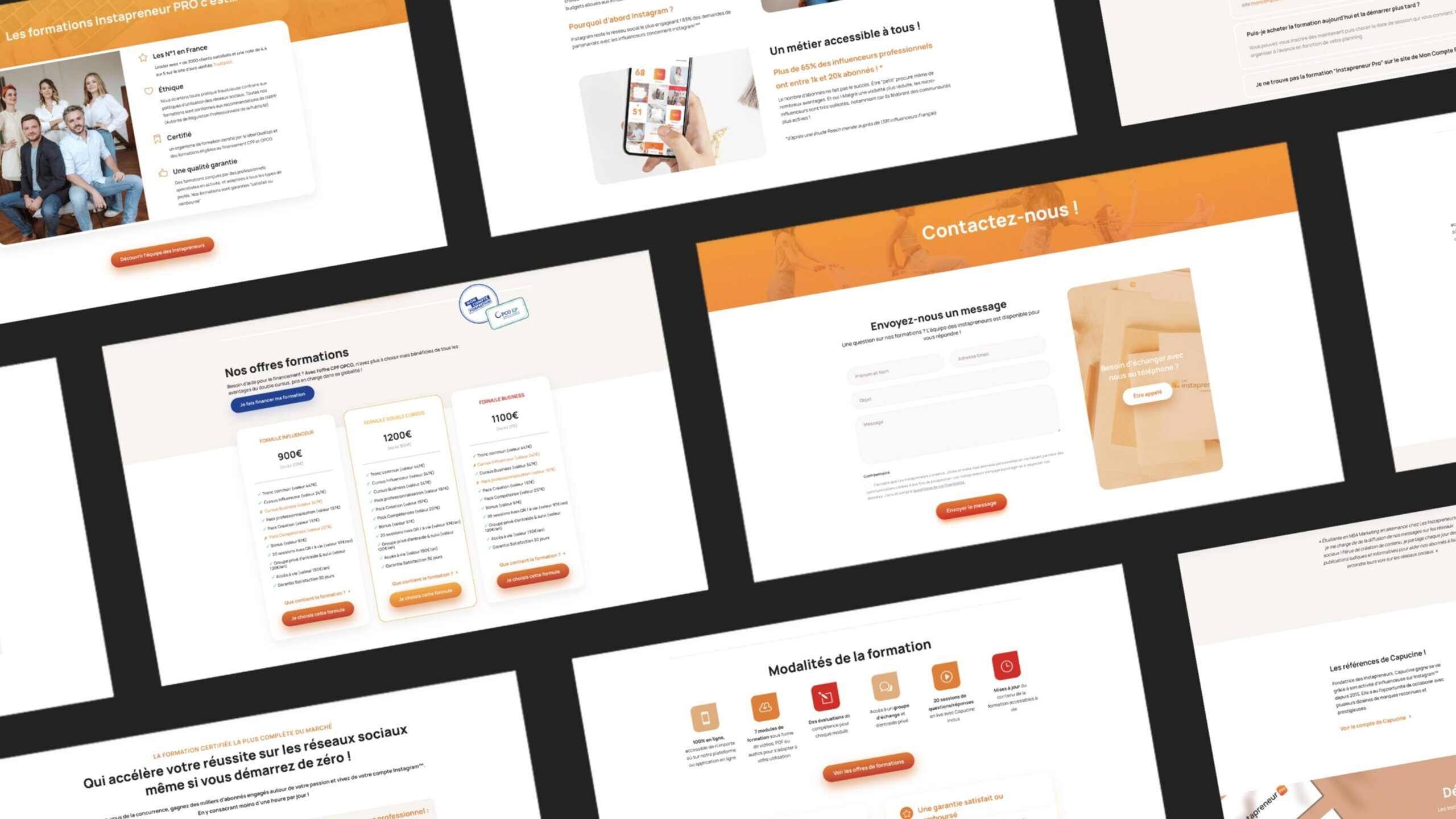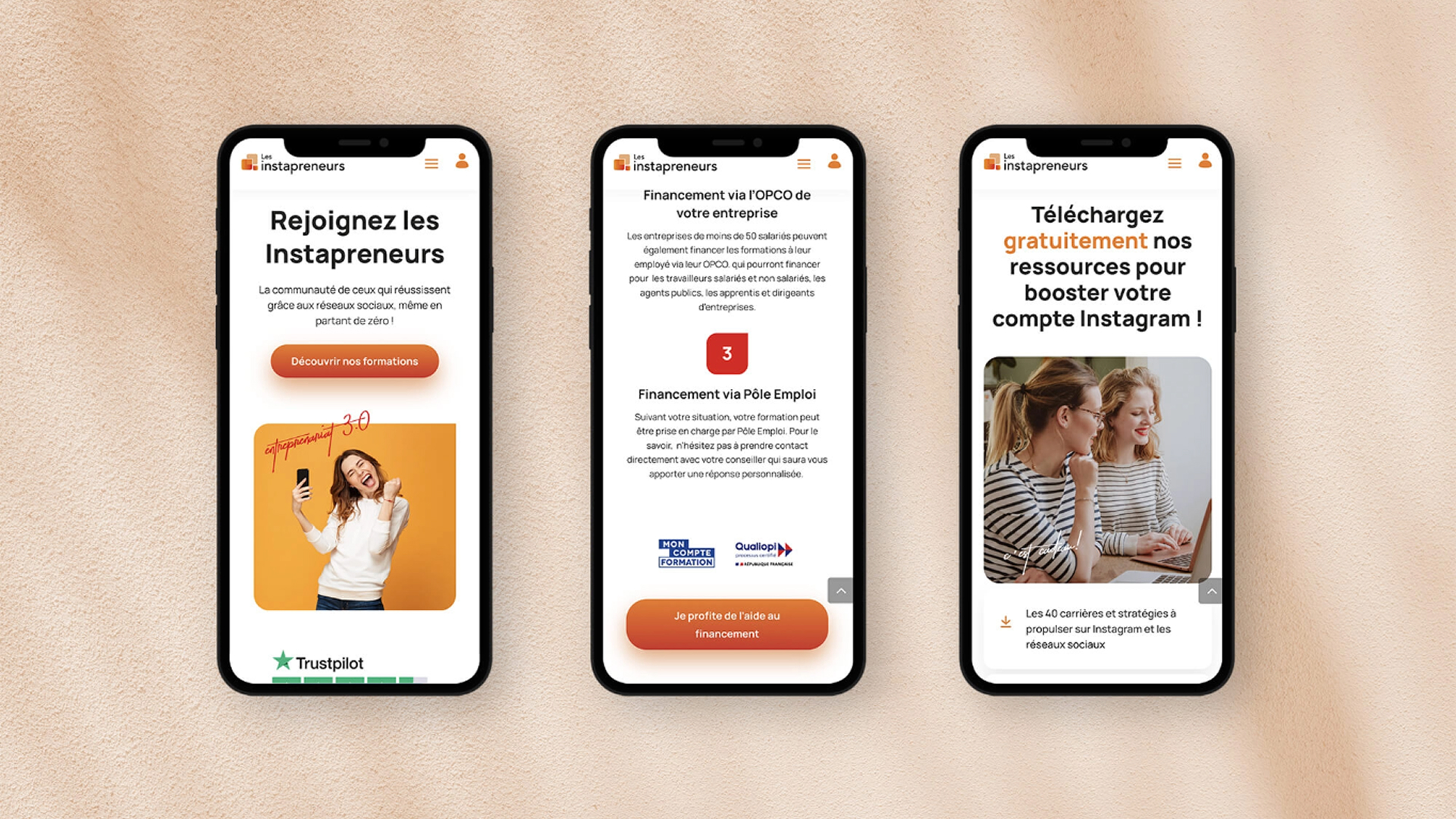 L’enjeu du projet était de transformer un site vieillissant en une plateforme moderne, cohérente avec l’identité de la marque et capable de convertir les visiteurs en contacts qualifiés. Les Instapreneurs souhaitaient un site qui reflète leur énergie, leur approche pédagogique et leur expertise en marketing digital.